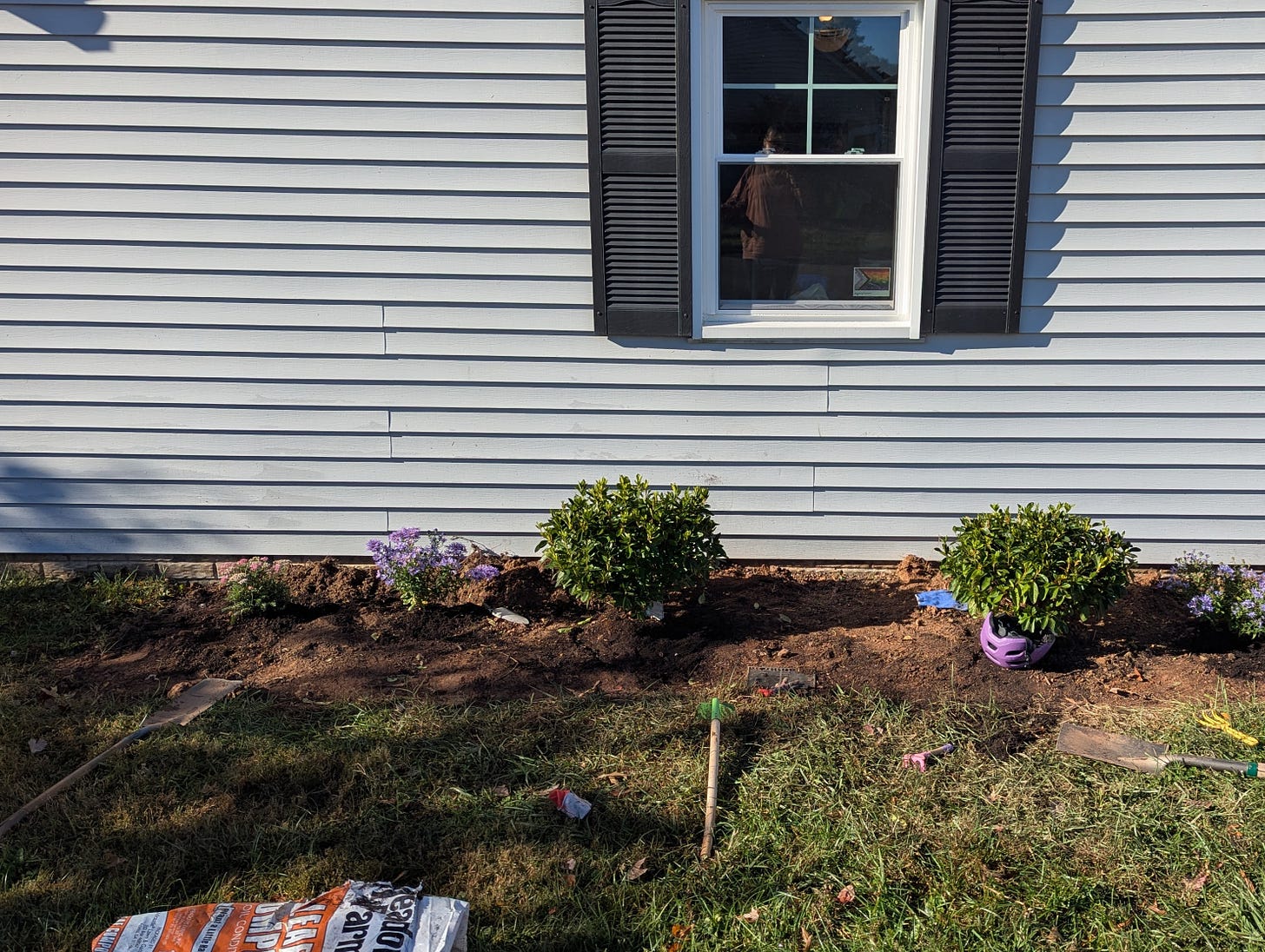Earlier that day my children and I had worked on planting new perennials in some of our garden beds. Our hope is to have a colorful, pollinator friendly array of native blooms throughout the year. It surprised me that the best time to plant perennials in the Mid-Atlantic, where we live, is October and November. I trust the experts at our local plant nursery so I rallied my kiddos to help me dig holes. We finished one garden bed, but barely started on the other before interest and energy waned. I knew I’d be back out in our soil on my own some other time this week. I surprised myself when I began to dig again by porch light a few hours later.